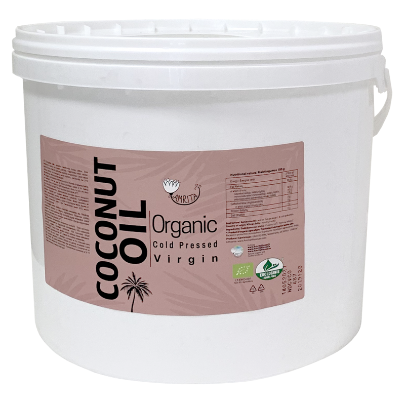 Ekologiškas nerafinuotas šalto spaudimo kokosų aliejus AMRITA, 10 l