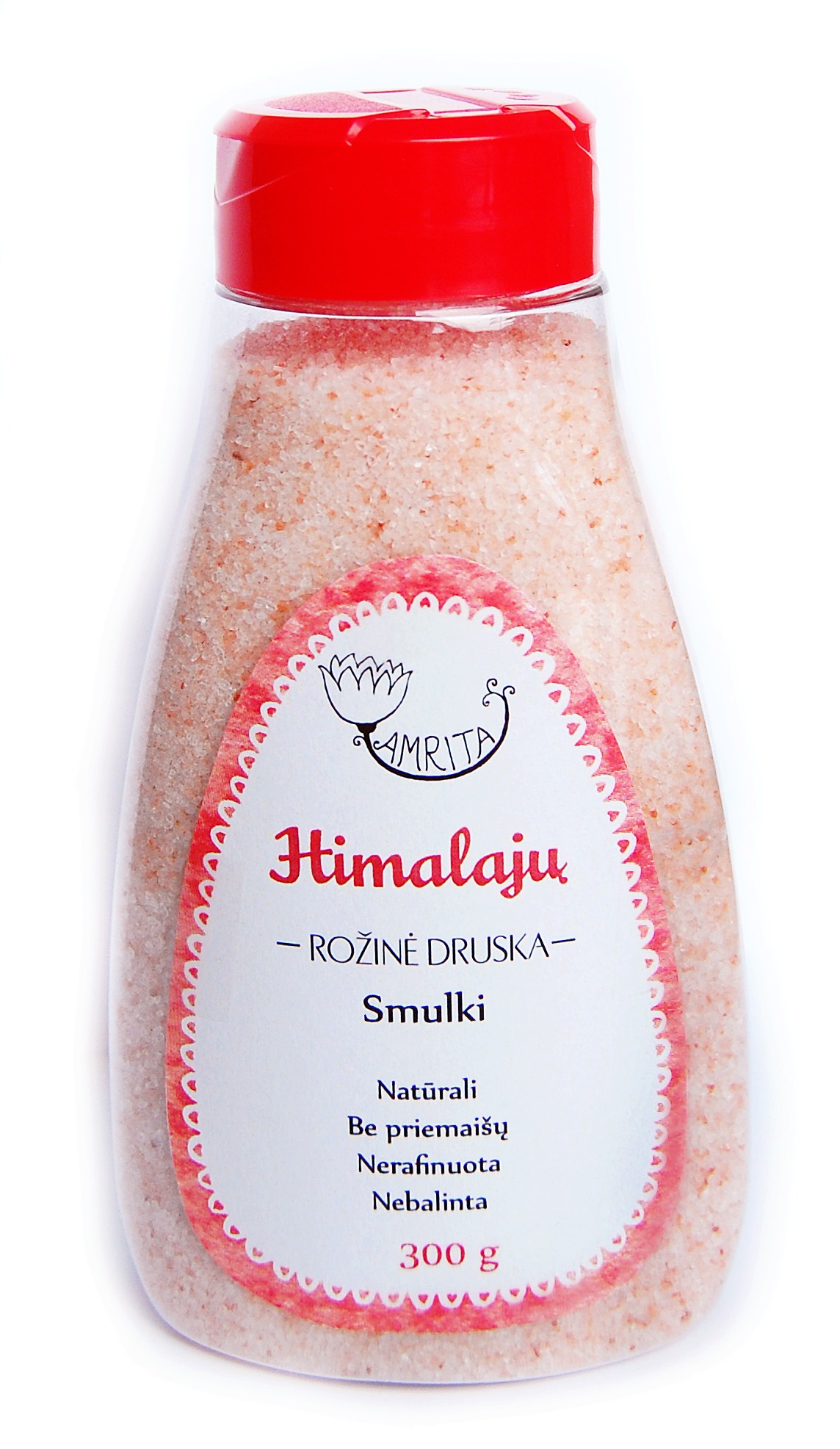 Smulki Himalajų rožinė druska indelyje AMRITA, 300g