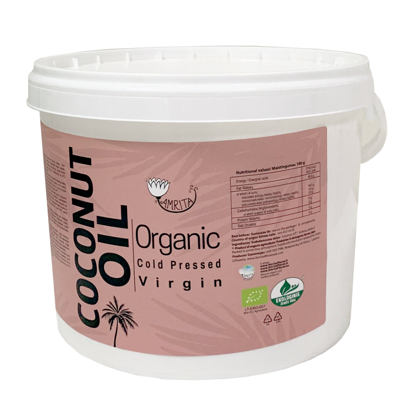 Ekologiškas nerafinuotas šalto spaudimo kokosų aliejus AMRITA, 3 l