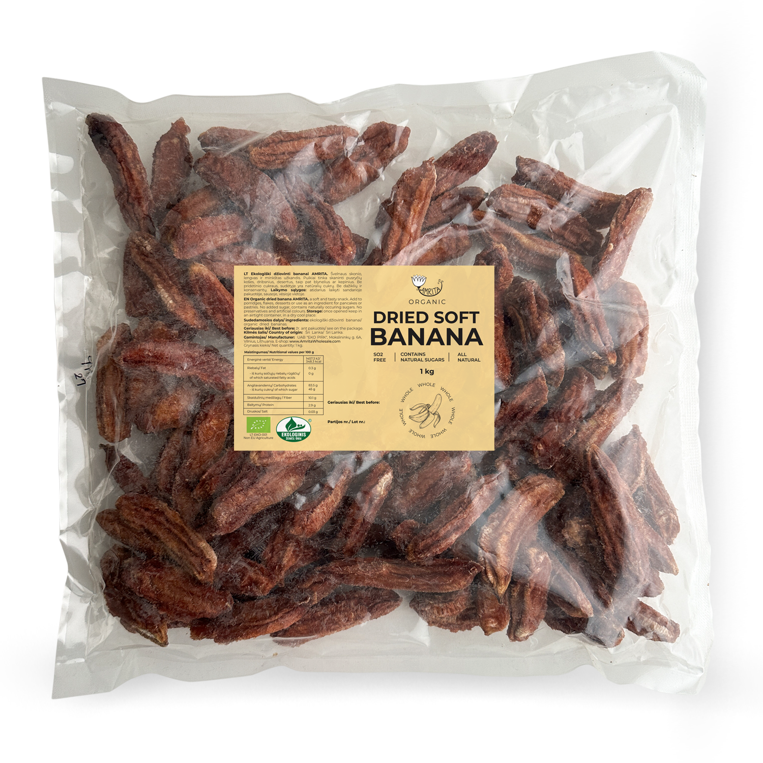 Ekologiški džiovinti minkšti bananai AMRITA, 1 kg