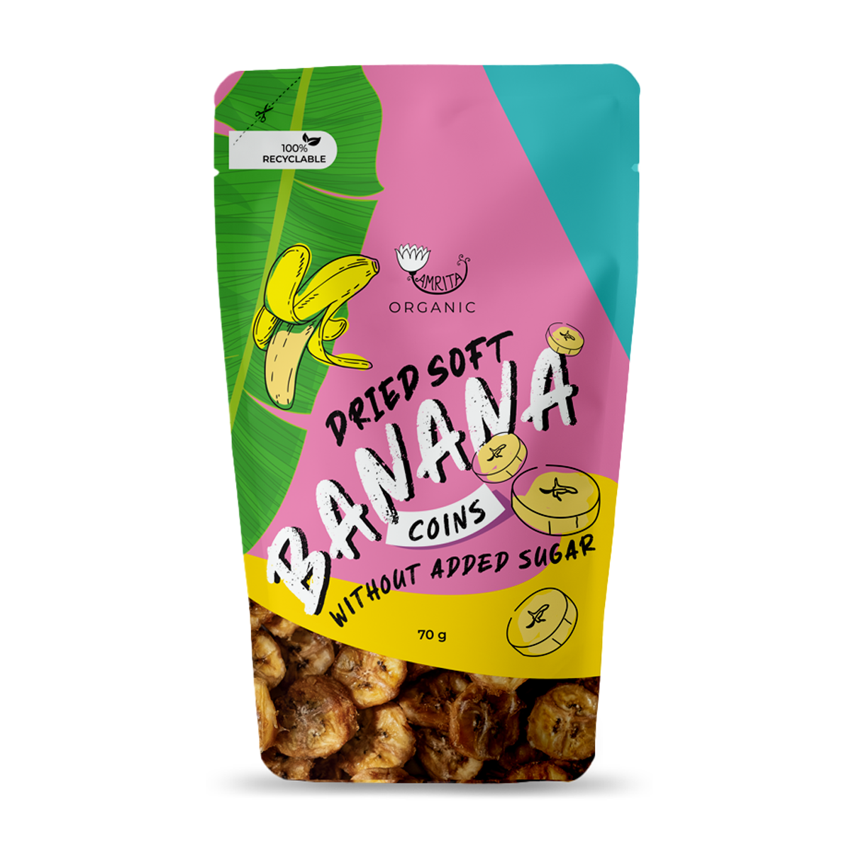 Sudedamosios dalys: ekologiški džiovinti bananai.